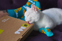 Каждый из них включает два носка для взрослых, четыре мини-носка для котов и собак декоративных пород, а также открытку с изображением QR-кода, который ведёт на мемный стикерпак в Telegram.