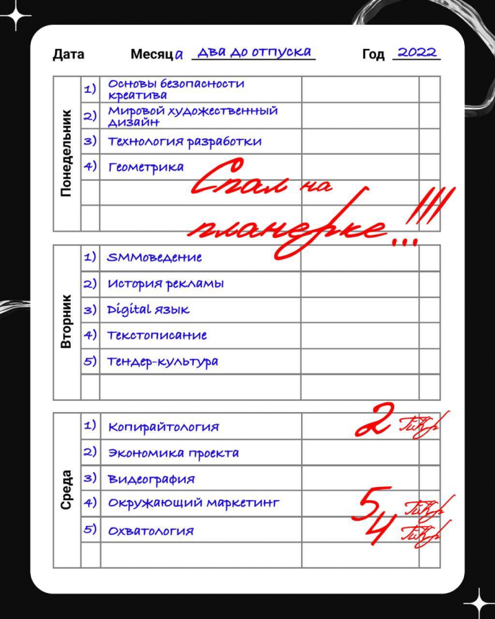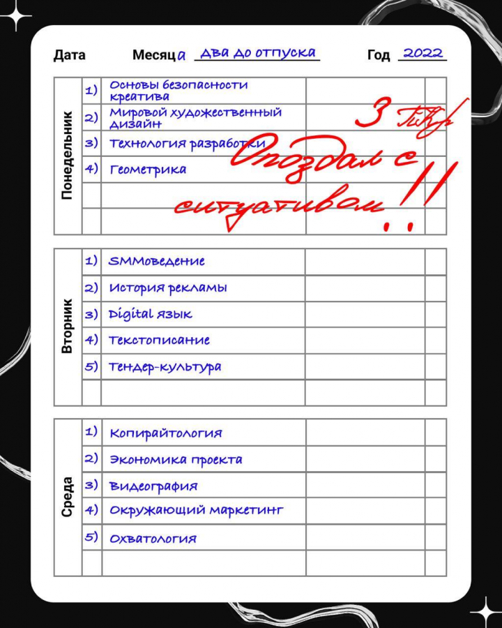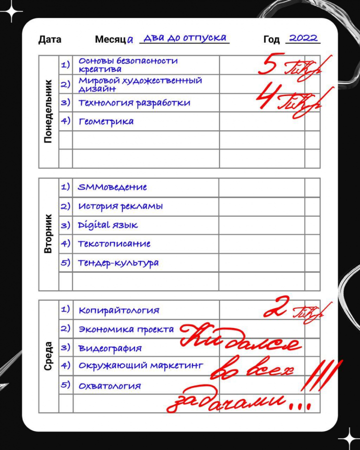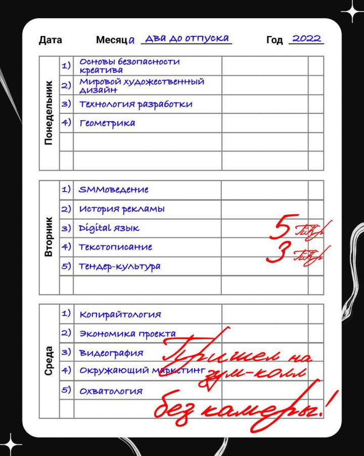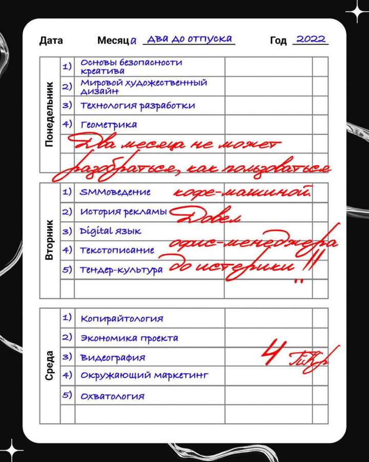 Агентство «Пикчер» представило, как может выглядеть дневник диджитал-специалиста: «Кидался во всех задачами», «Опоздал с ситуативом»… за такие выходки можно получить (зум)кол (л).