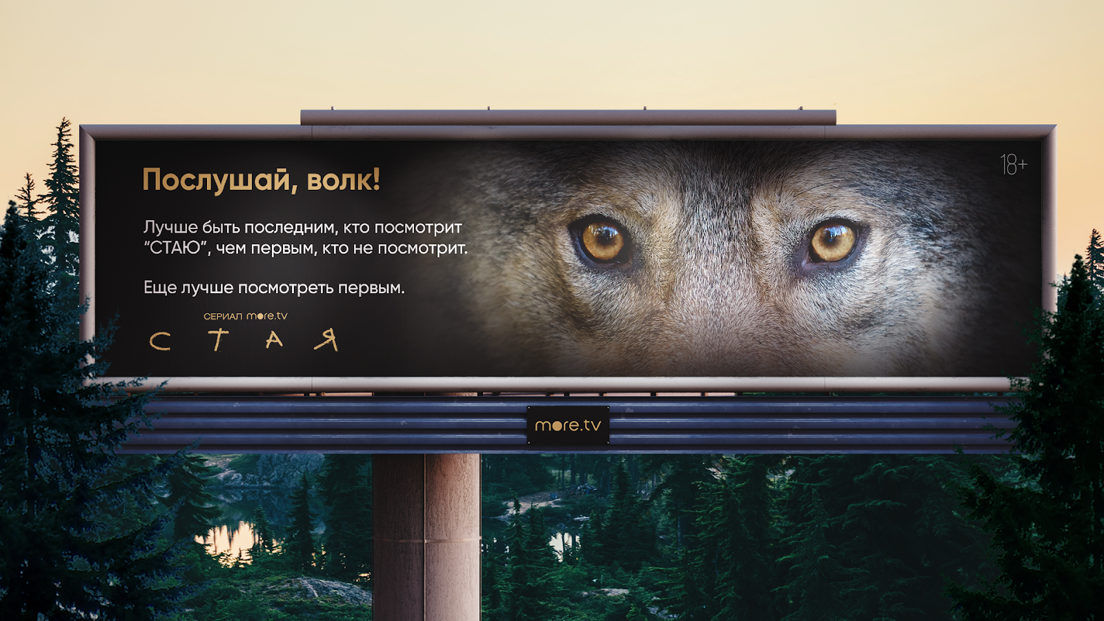 В середине сентября на видеосервисе more․tv состоялась премьера экстремальной драмы «Стая». Чтобы рассказать об этом, были разработаны креативы для наружной рекламы с мудрыми цитатами от волка.