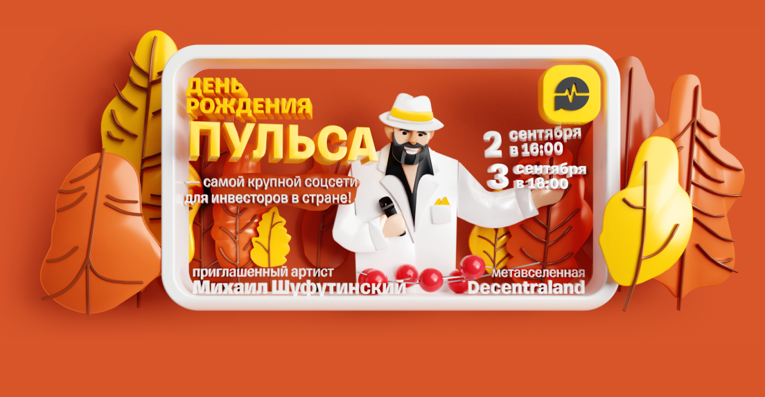 3 сентября соцсеть «Пульс» от «Тинькофф Инвестиций» отметил своё трёхлетие. Праздник прошёл в метавселенной Decentraland с участием Михаила Шуфутинского — главного исполнителя хита про «календарь» и «костры рябин». Выступление артиста состоялось в городском осеннем парке киберпространства Tinkoff Pulse Park.