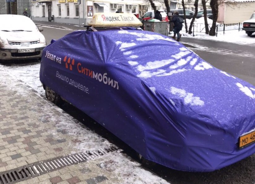 «Ситимобил» надел чехлы с собственной рекламой на машины «Яндекс.Такси»
