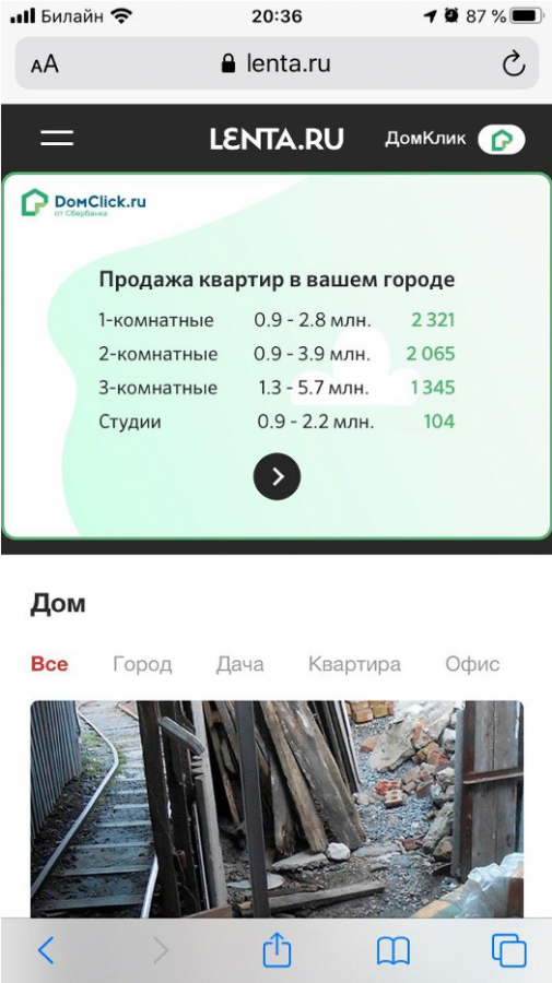 Lenta.ru и креативный хаб R.Point, входящие в состав Rambler Group, разработали рекламную кампанию для сервиса «ДомКлик» от Сбербанка. На страницах издания появился виджет «Дом мечты», который в режиме реального времени отображал релевантные для читателя предложения по покупке и аренде недвижимости. Варианты жилья учитывали геолокацию, стоимость и подтягивались из сервиса напрямую по API.