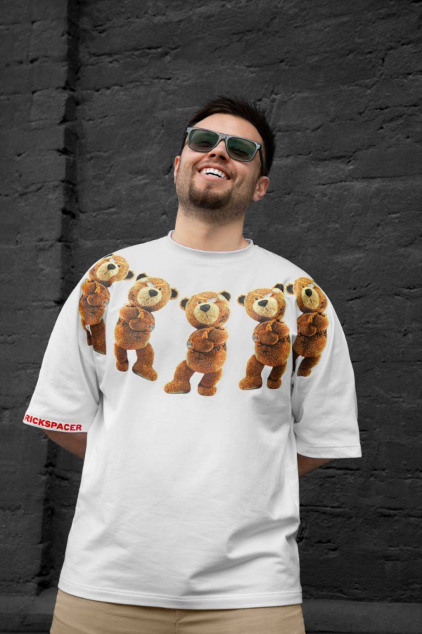 Мишки с повязкой и золотом — символ художника Brickspacer, который и создал дизайн футболок, бомберов и толстовок для банка. Мишки размещены ожерельем вокруг горловины, на локтях или предплечьях изделий, а на спине оставлена подпись художника.