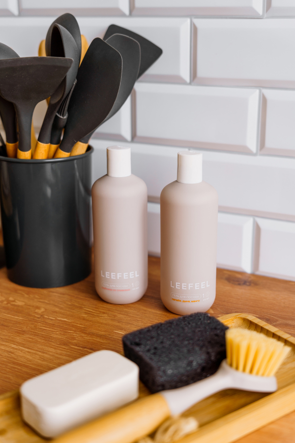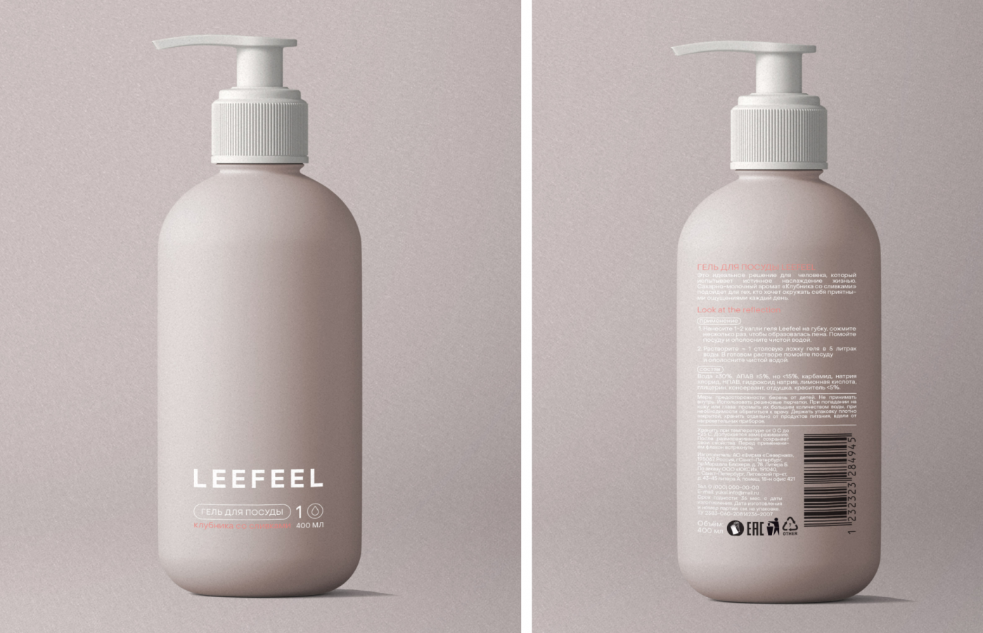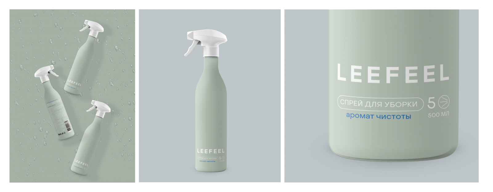 Новый бренд получил название Leefeel — слово-перевертыш, отражающее зеркально чистые поверхности после уборки и взаимосвязь чистоты в доме с внутренним состоянием человека. Дизайн создавался с учетом тренда на снижение визуального шума: упаковка выполнена в нейтральных оттенках и с большим количеством «воздуха» — чтобы не перегружать графикой и информацией. Каждому средству присвоен номер, так потребителю будет проще ориентироваться в линейке и докупать недостающие продукты. А на имиджевом сайте, созданном специально для бренда, вместо ассортимента представлены амбассадоры чистоты с собственной миссией.