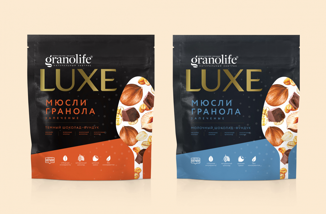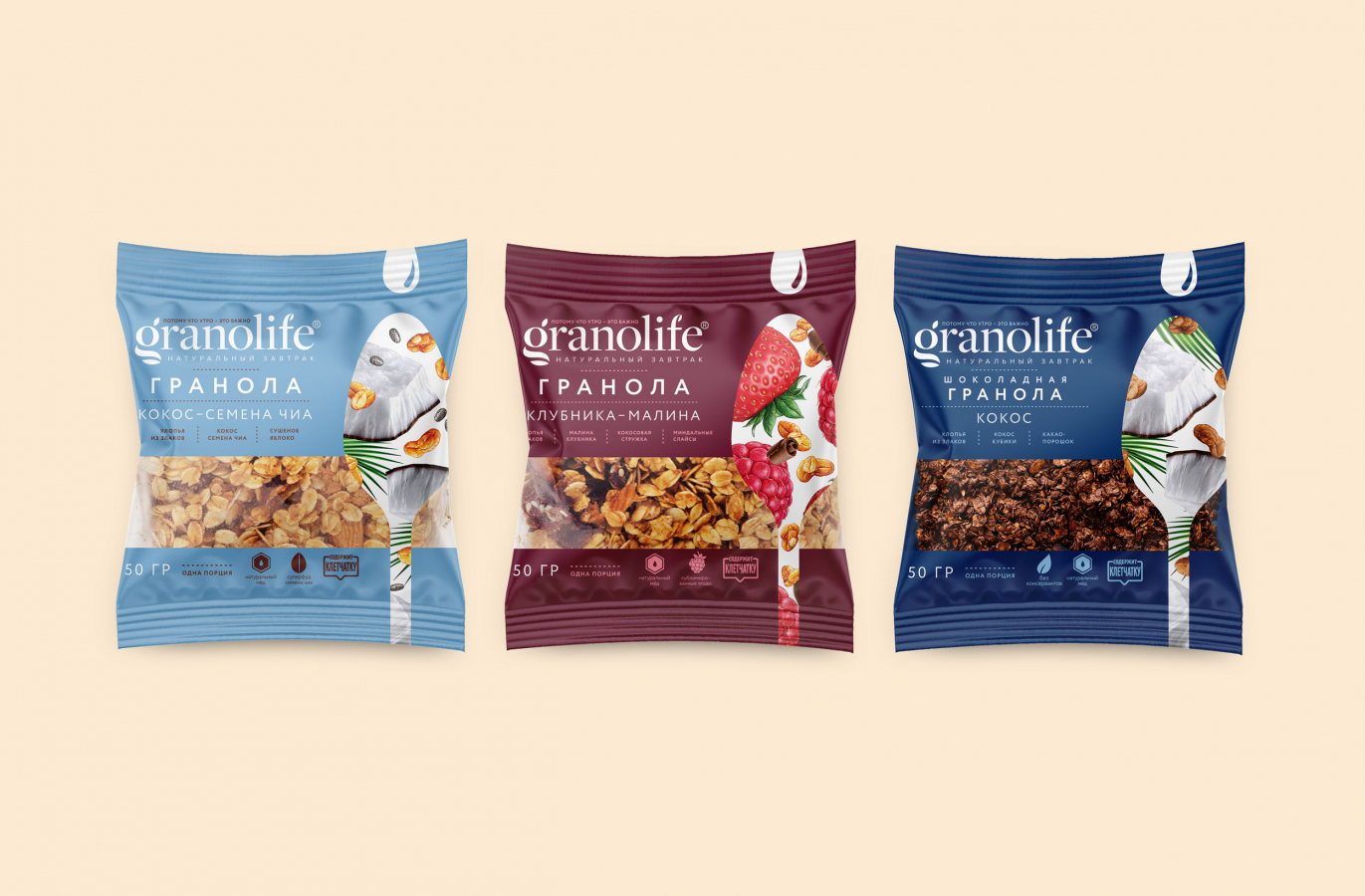 В оформлении специалисты использовали основные элементы, которые выделяют все продукты Granolife. Силуэт ложки — единственный предмет, который требуется, чтобы превратить содержимое пачки в полезный и питательный завтрак или перекус. А также спокойная, «премиальная» цветовая палитра и минимальное количество информации на лицевой стороне упаковки.