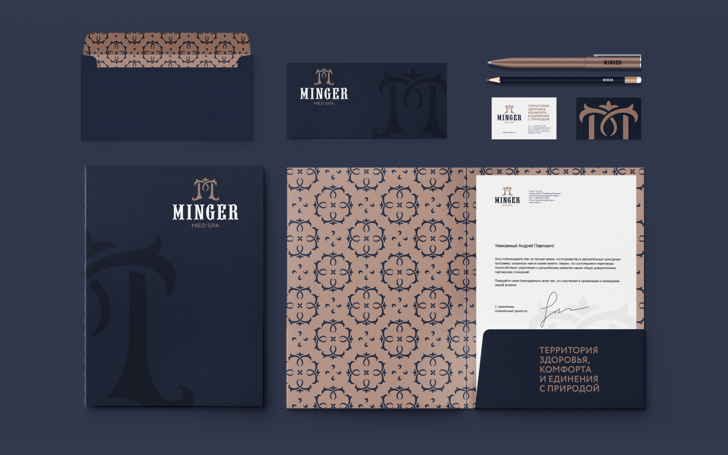 С одной стороны, в айдентике загородного комплекса Minger Tower в Республике Татарстан команда Getbrand должна была показать эксклюзивность, фешенебельность и высокие стандарты обслуживания, характерные для 5- звездочных отелей мирового класса, и в то же время передать аутентичность места, сохранив его «дух».