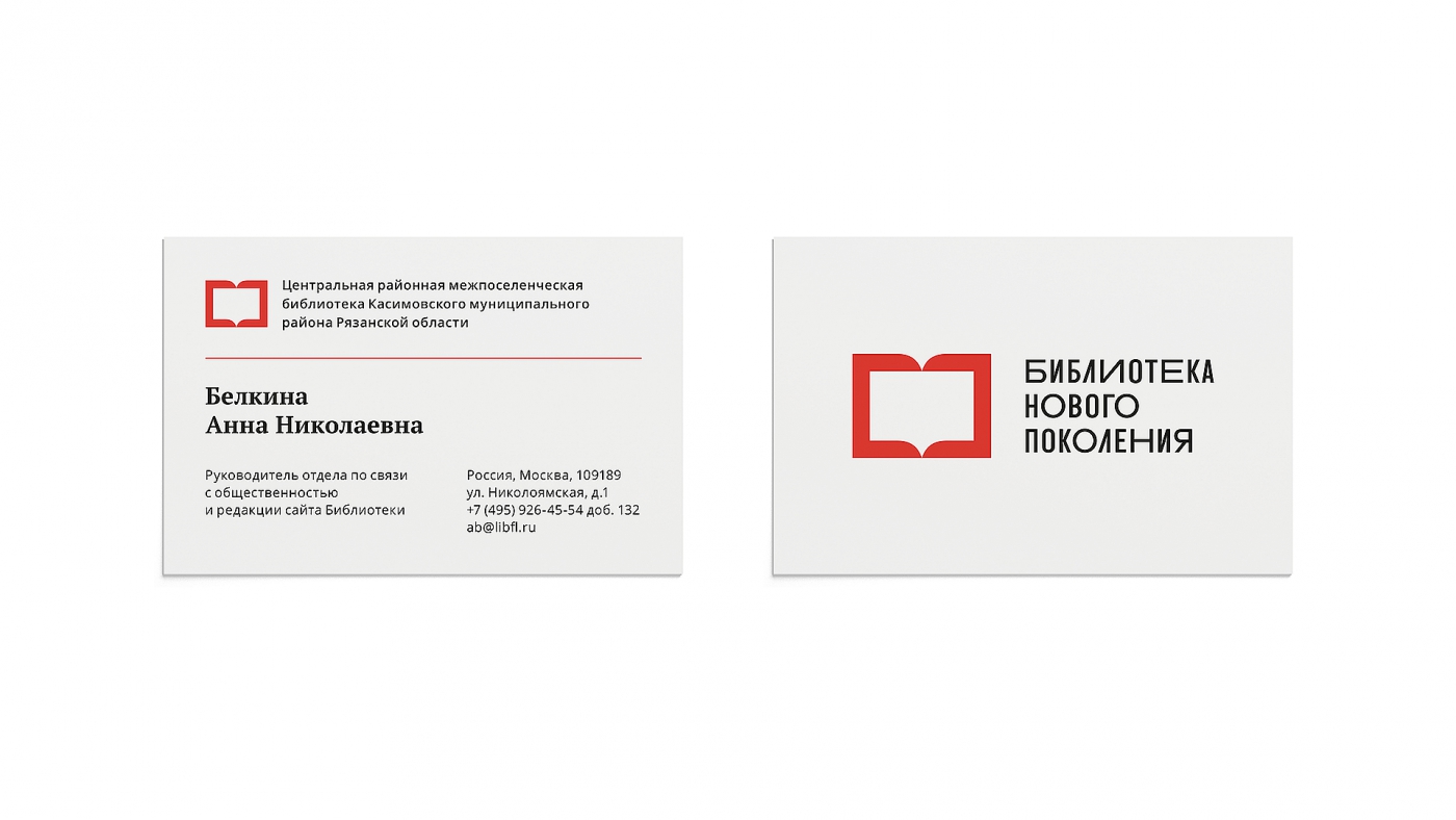При создании шрифта «Библиотек нового поколения» команда вдохновлялась ритмикой расположения книг на полках. Логотип проекта объединяет образы раскрытой книги, диалога и открытого окна. Поскольку он в первую очередь должен размещаться на вывесках, творческая группа в своей работе учитывала особенности библиотечных зданий.