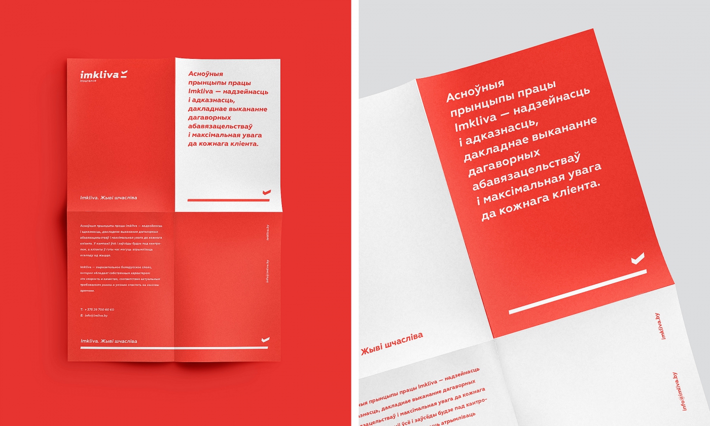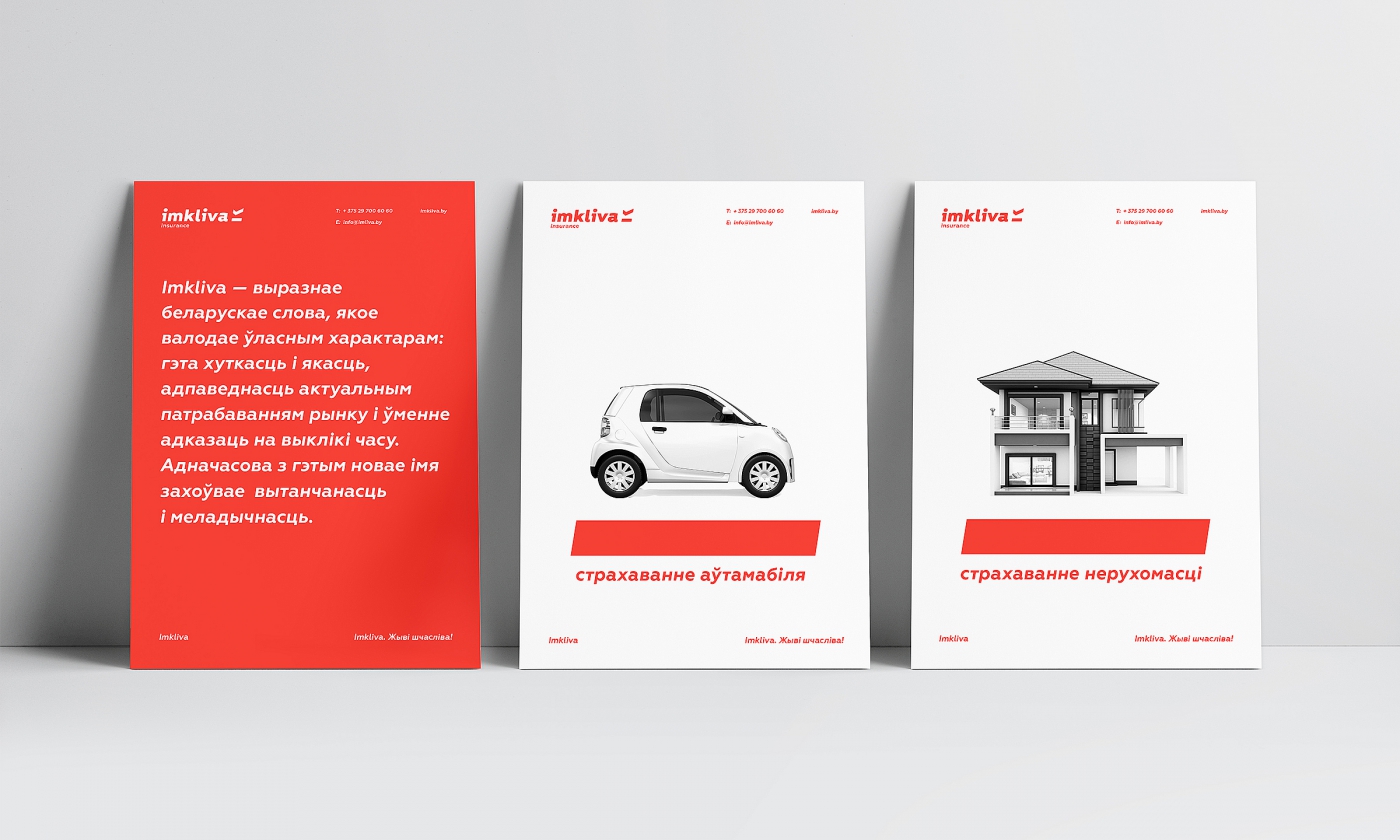 Настроение нейма поддерживает слоган: «Imkliva. Жыві шчасліва» – рифмованное, короткое послание с очень позитивным эмоциональным посылом. Выстраиваемый образ передаёт нужное сообщение: у компании всё и всегда будет под контролем, а клиенты в это время смогут наслаждаться жизнью.