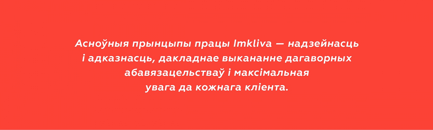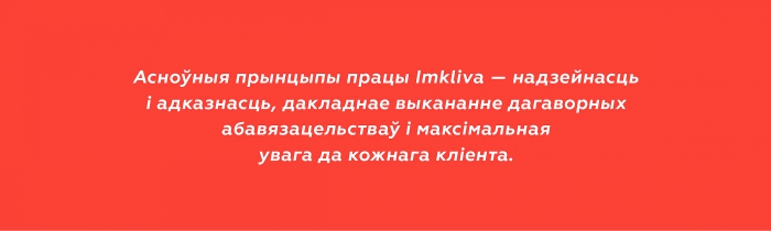 Imkliva – выразительное белорусское слово, которое обладает собственным характером: это скорость и качество, соответствие актуальным требованиям рынка и умение ответить на вызовы времени. Одновременно с этим новое имя сохраняет и изящество, и мелодичность.