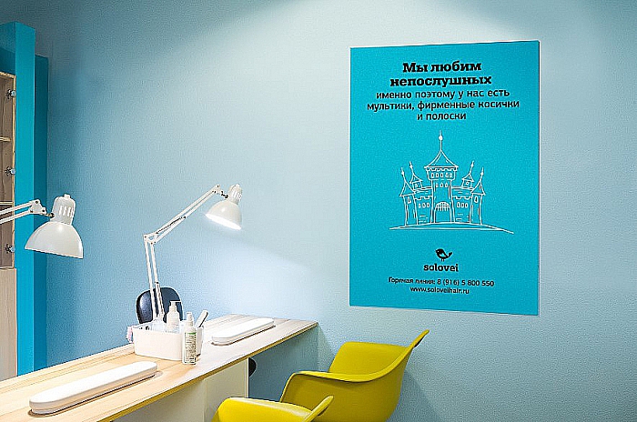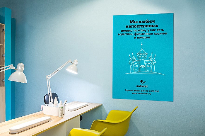 В качестве фирменных цветов были предложены теплый бирюзовый и небесно голубой, создающие шведскую атмосферу. В сочетании с простой, удобной мебелью, выполненной в скандинавском стиле, и деревом, используемом в интерьере, родился дружелюбный и яркий, но в тоже время недорогой в исполнении стиль. Обзор на Составе.