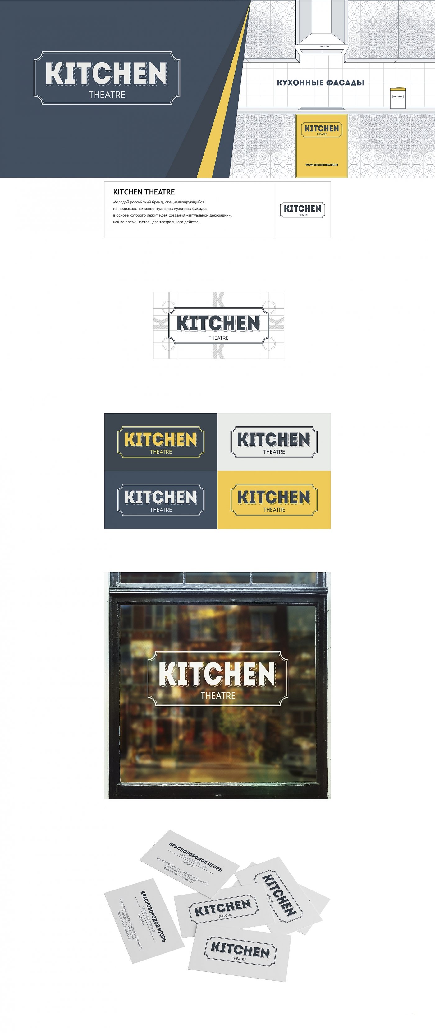 Чтобы отразить уникальность Kitchen Theatre в элементах фирменного стиля, агентство коммуникаций AVANT выбрало наиболее подходящие шрифты, начертания, цветовые вариации и элементы оформления. Шрифт без засечек, современный и недвусмысленный, может использоваться с фирменным цветом фона и без него. Желтый, синий, серые оттенки – сочетание теплоты и строгости, уюта и неординарности. Особая двойная рамка для имени бренда делает стиль логотипа Kitchen Theatre винтажным – резным, как и фасады этой компании.