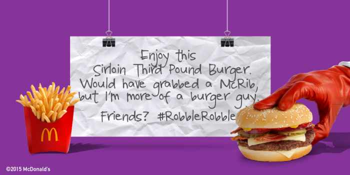 В рамках новой кампании McDonald’s выпустила два ролика и создала несколько принтов, запущенных в сервисе микроблогов Twitter, в которых McDonald’s возродил героя по имени Hamburglar (от игры слова hamburger, гамбургер, и burglar, грабитель).