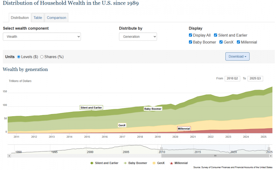 Поколение бэби-бумеров на сегодняшний день считается самым богатым в истории. Их совокупное состояние в США достигает десятков триллионов долларов, а медианное благосостояние заметно выше, чем у предыдущих поколений в аналогичном возрасте.