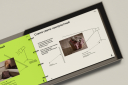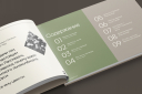 Фирменный стиль — это сочетания крафтовых текстур, спокойного зеленого цвета и черно-белых фотопейзажей. Акцент решения — минималистичный фирменный шрифт.