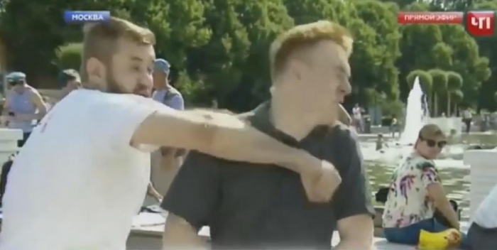 В столичном парке Горького во время празднования дня Воздушно-десантных войск пьяный мужчина набросился на корреспондента телекомпании НТВ, который вел репортаж в прямом эфире. Прямое включение пришлось прервать, а журналисту обратиться за медицинской помощью. Хулиган был задержан на месте и препровожден в отделение полиции. Там он сообщил, что корреспондент просто подвернулся ему под руку.