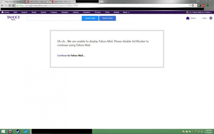 Yahoo закрыл вход в почту пользователям, которые намеренно блокируют рекламу в браузере с помощью сервиса Adblock. Соответствующие жалобы появились на официальном форуме Adblock.