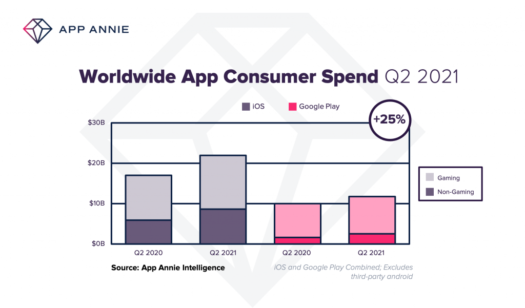 Расходы пользователей на мобильные приложения достигли рекордной суммы — $34 млрд.Траты на мобильные приложения растут по мере ослабления ограничительных мер в мире. По сравнению с прошлым годом они выросли на $7 млрд, что связывают с глобальным экономическим подъемом, следует из отчета App Annie.