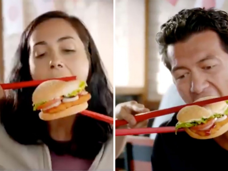 Компания разместила на своей странице рекламный ролик нового бургера TenderCrisp с начинкой из вьетманского сладкого перца чили. Герои видео едят его с помощью огромных красных палочек для еды. Это сделано для того чтобы, как утверждается в ролике, перенестись с помощью вкуса в Хошимин.