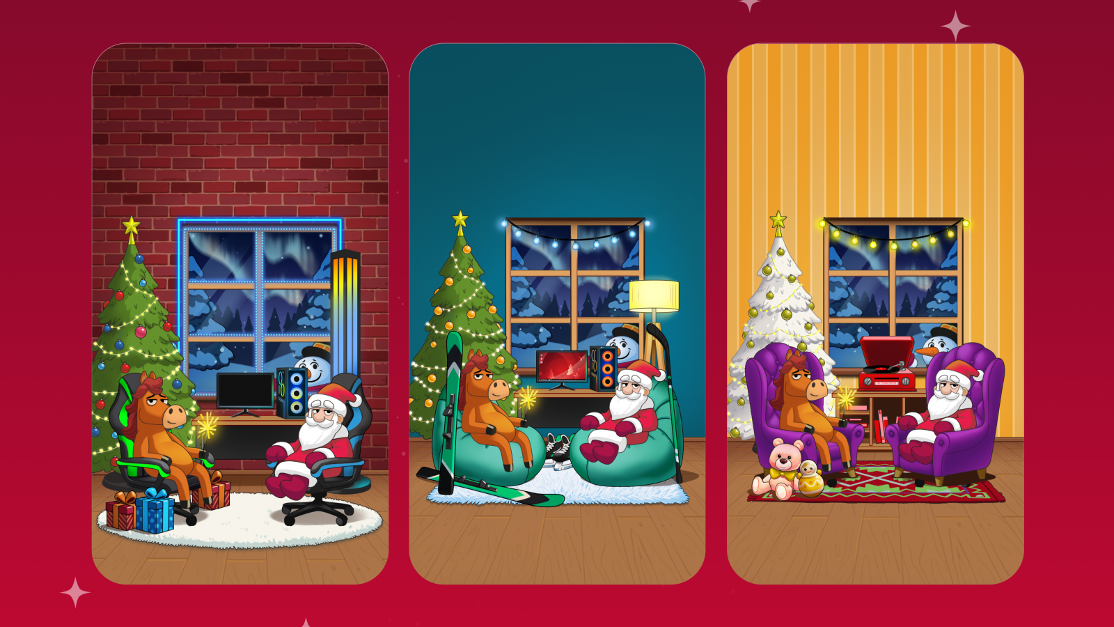 Параллельно с прохождением уровней пользователь обустраивает гостиную, в которой живут персонажи Нового года — Дед Мороз и его конь, которые реагируют на действия пользователя и прогресс в игре. Элементы интерьера открываются постепенно и имеют несколько вариантов оформления: базовые — бесплатные, расширенные — за бонусы «Магнит Плюс», эксклюзивные — за выполнение бизнес-заданий.