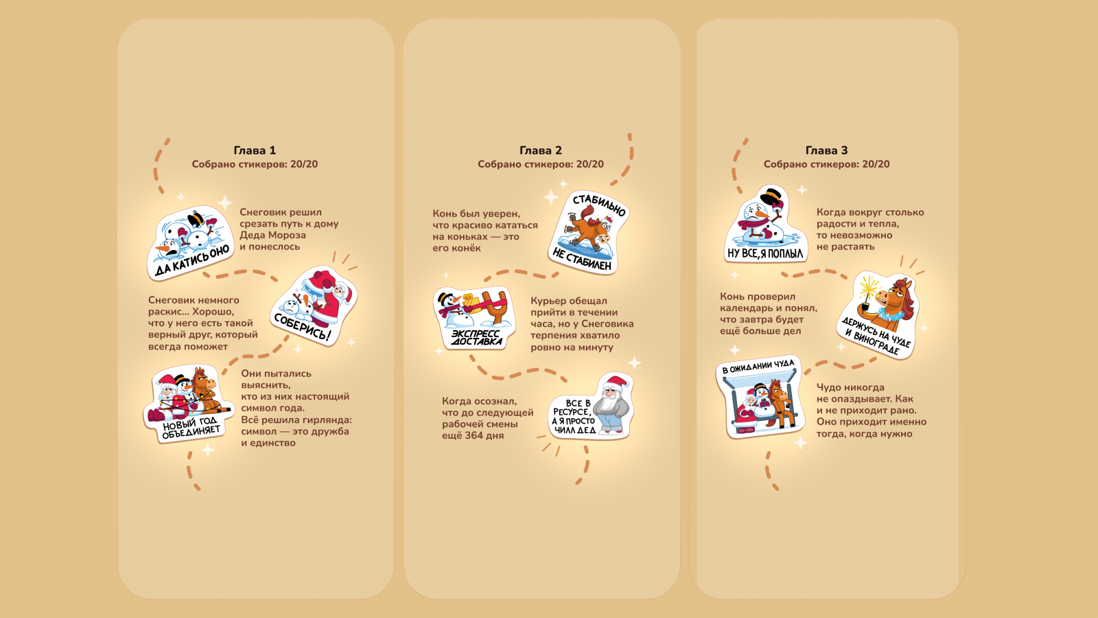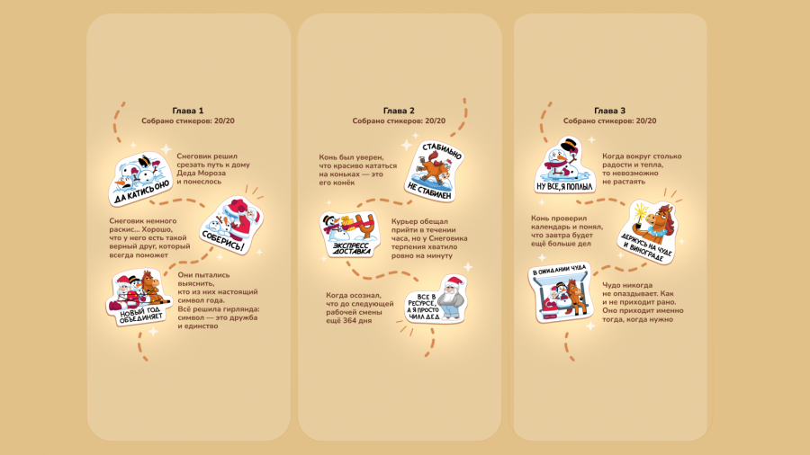 Игроки проходят уровни, обустраивают гостиную Деда Мороза и его коня, собирают «Магнистикеры» и участвуют в розыгрыше призов — от промокодов до одного миллиона рублей. Особенность проекта — моментальные призы за прохождение уровней. А продвигаться по ним быстрее помогают бизнес-задания: покупки на заданную сумму, использование бонусов «Магнит Плюс», подписка на уведомления бренда и другие.