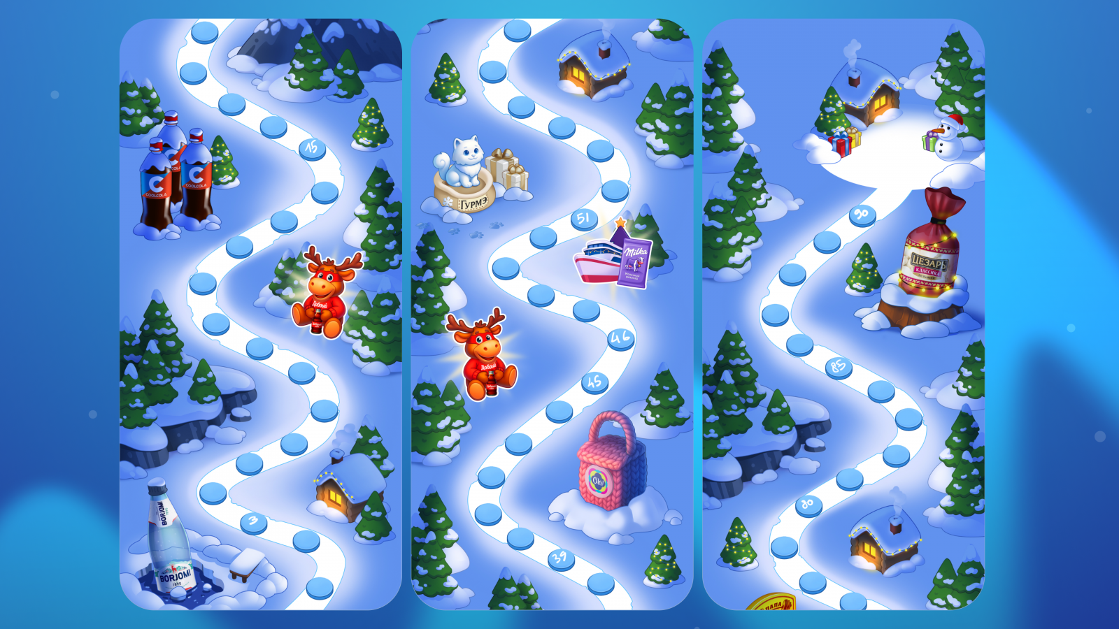 В основе проекта — в механике sorter (вариация «три в ряд»). Игрок перемещает предметы между полками, собирая три одинаковых элемента и очищает поле за ограниченное время. Победы продвигают пользователя по праздничной карте в 90 уровней, оформленной в новогоднем сказочном сеттинге, в которую интегрированы партнеры акции и ассортимент сети.