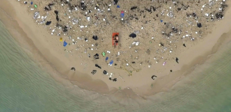 На видео пара занимается любовью на пляже, заваленном горами мусора. На фоне волонтеры очищают песок и воду от пластиковых отходов. Фильм демонстрирует, как горы мусора могут испортить красивую сцену.