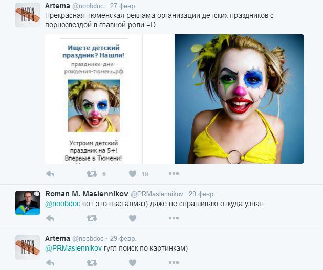 Рекламодателям пора привыкнуть, что пользователи стали очень внимательными и научились пользоваться поиском по картинкам. Если не проявлять бдительность, то можно оказаться в щекотливой ситуации, как, праздничное агентство «Супергерои Тюмени». Компания разместила рекламу с порноактрисой Лекси Белл: «Устроим детский праздник на 5+».