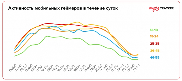 Первым исследованием платформы стал анализ портрета платящего российского пользователя мобильных игр. Данные показали, что активнее всех платят игроки в возрасте 25-35 лет. На молодую аудиторию в возрасте 12-24 лет приходится почти 30% платежей. Наиболее платящими среди них являются пользователи 18-24 лет, на которых приходится порядка 20% транзакций, что сопоставимо с объемом платежей взрослых игроков (35-45). Платящие мобильные геймеры пользуются дорогими девайсами, чья цена превышает 20 тысяч рублей. Если мобильная активность в целом достигает пика к вечеру, то мобильные геймеры более активны в первой половине дня в полдень - в основном за счет аудитории подростков.