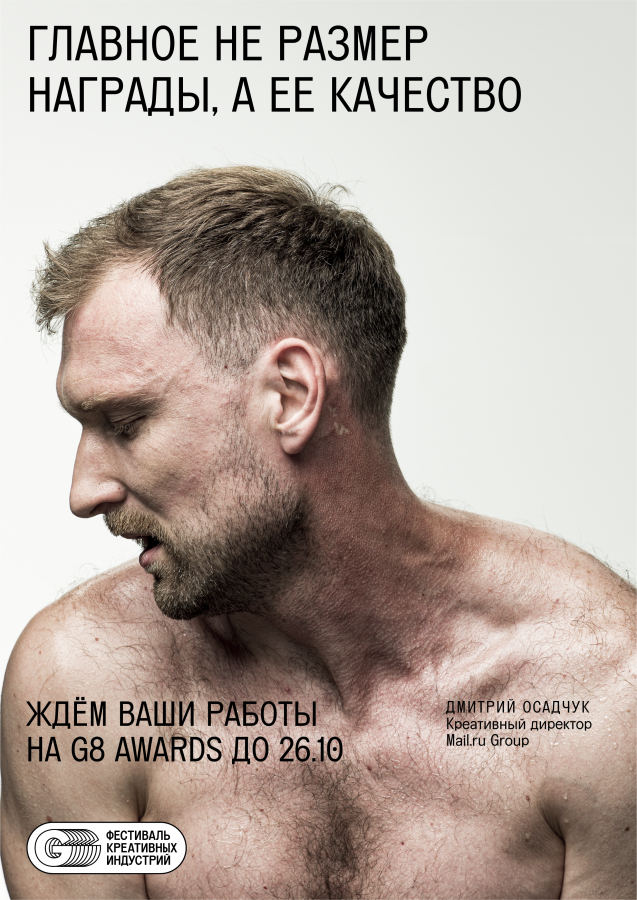 Креативный директор Mail.ru Group Митя Осадчук, основатель SLAVA Денис Лапшинов, CEO Pixies Studio Лена Аникеева и другие креативщики снялись в провокационной рекламной кампании в поддержку конкурса G8 Awards.