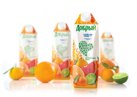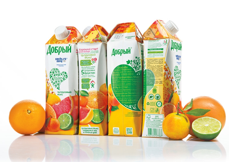 Компания Мултон запустила новую линейку соков под брендом «Добрый» специально к Олимпиаде в Сочи. В рамках проекта агентство DDVB разработало два варианта олимпийской упаковки: традиционного для бренда зеленого цвета, и абсолютно нового, более премиального на вид.