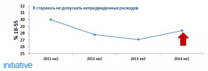 Усиливается тенденция рационального отношения к финансам, по сравнению с прошлым периодом на 5% выросло число россиян, которые стараются не допускать непредвиденных расходов.