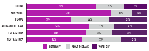 Жители развивающихся стран чаще, чем развитых, положительно оценивают свое финансовое благополучие