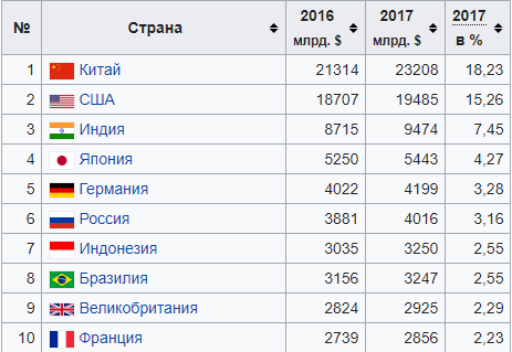 В десятке самых больших экономик мира по ВВП по пять развитых и развивающихся стран, почти половина из них — четыре — европейские (МВФ, 2017 г.).
