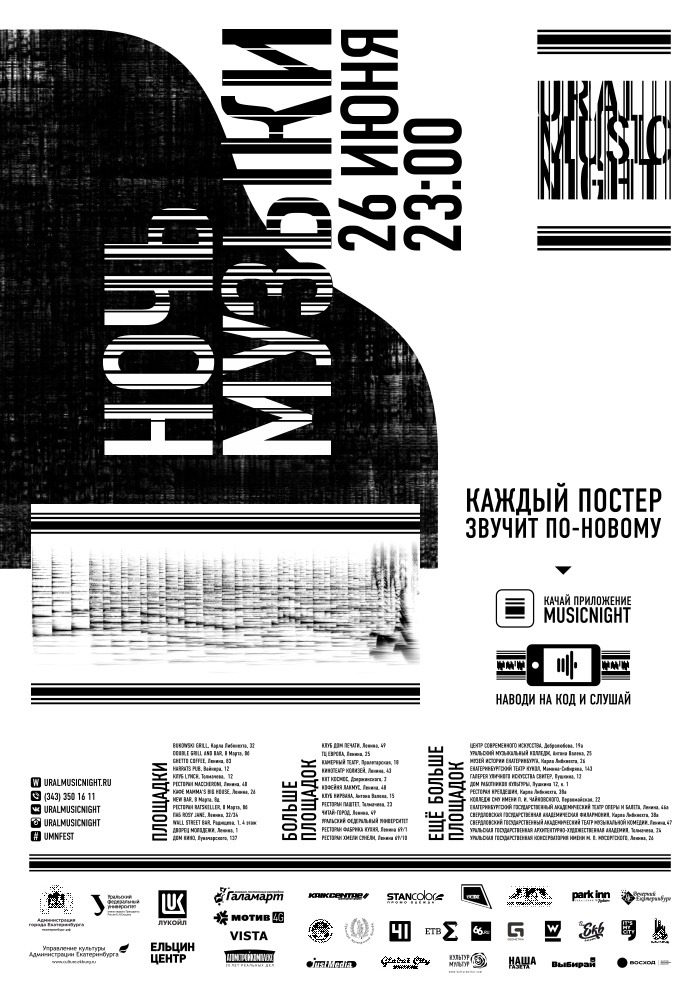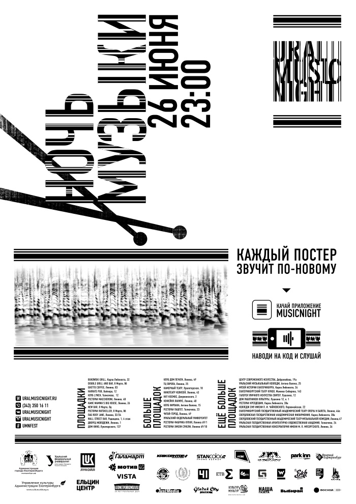 РА «Восход» разработало необычный фирменный стиль и концепцию рекламной кампании для екатеринбургского рок-фестиваля Ural Music Night. Основой кампании стала технология, позволяющая синтезировать любой звук из его графического изображения. С помощью этого метода рекламисты создали мобильное приложение, которое превращает изображение в «живую» музыку.