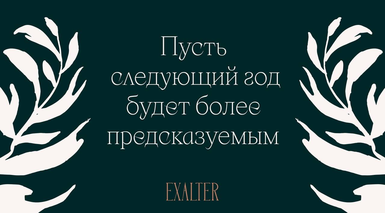Команда Exalter поздравляет читателей Sostav, коллег и клиентов с Новым годом! Я хочу пожелать расслабленности, душевной гармонии и невероятной веры в себя, свои силы и команду. С наступающим Новым годом!