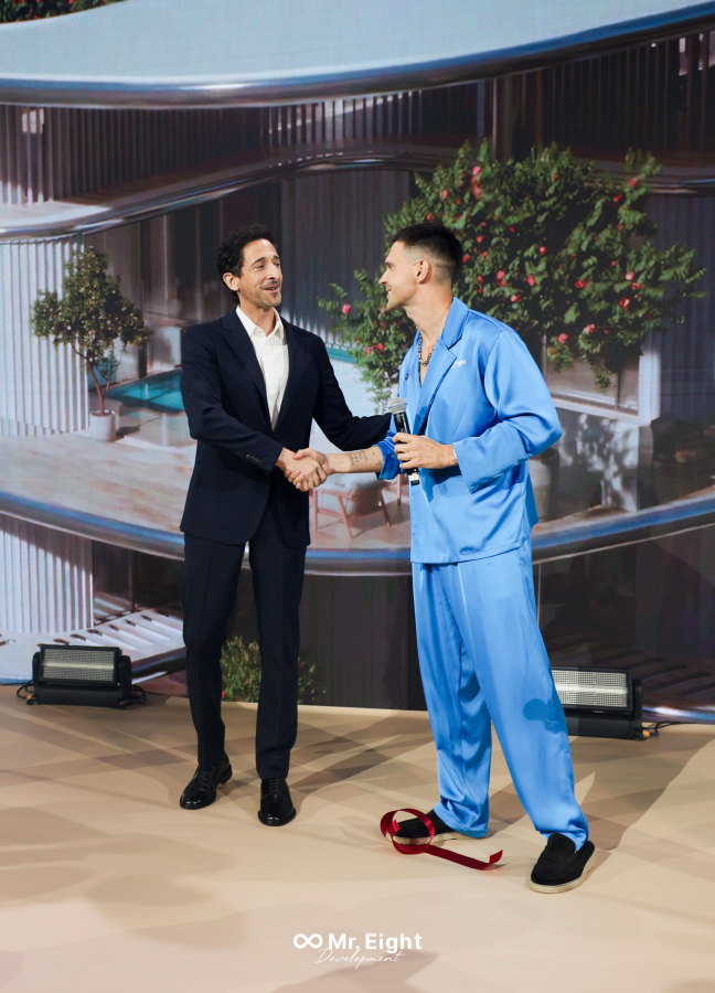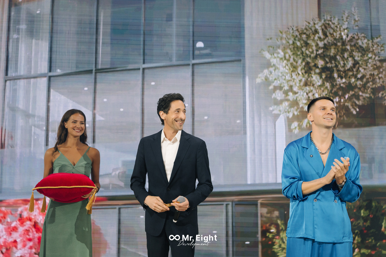 Главным акцентом мероприятия стал приглашенный гость — голливудский актер Эдриан Броуди, двукратный лауреат «Оскара». Его выбор был символичным, так как последнюю статуэтку в 2025 году он получил именно за роль архитектора в фильме «Бруталист». Его участие в девелоперском проекте позволило органично связать архитектуру, искусство и статусность.