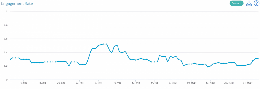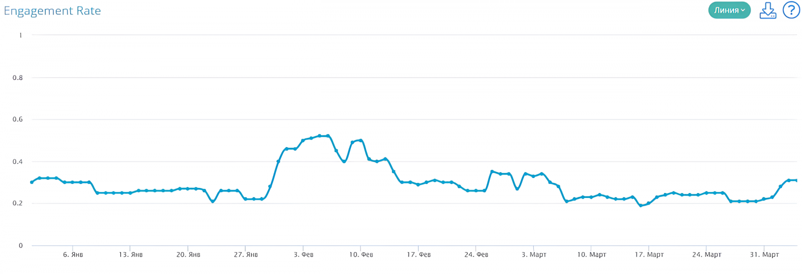 - В топ-1 по уровню вовлеченности будет пост «Квадровоппер». ER — 0,32%. При среднем значении 0,07% за 2023−2024 год.