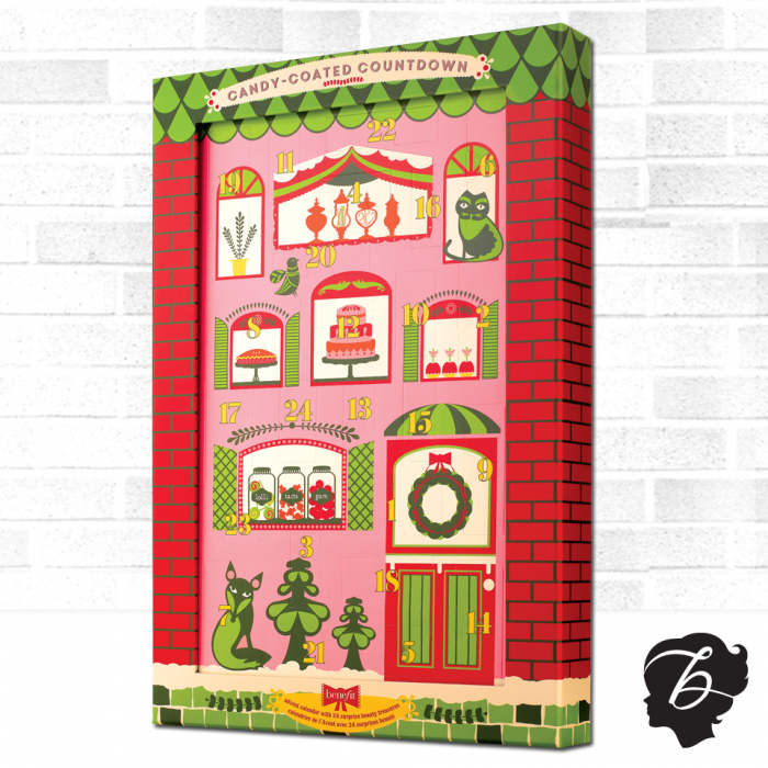Косметический бренд Benefit Cosmetics, вдохновившись шоколадными календарями - любимой предновогодней детской забавой, выпустил ограниченную версию мейкап календарей. Набор к праздникам содержит 24 мини-продукта косметики первой необходимости. Предлагается, как и в случае с шоколадным календарём, каждый день открывать по одной картонной «двери» упаковки, балуя себя небольшими подарками, и отсчитывать дни до начала праздничных каникул.