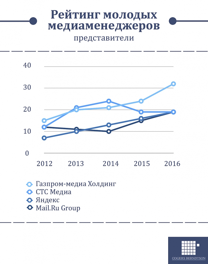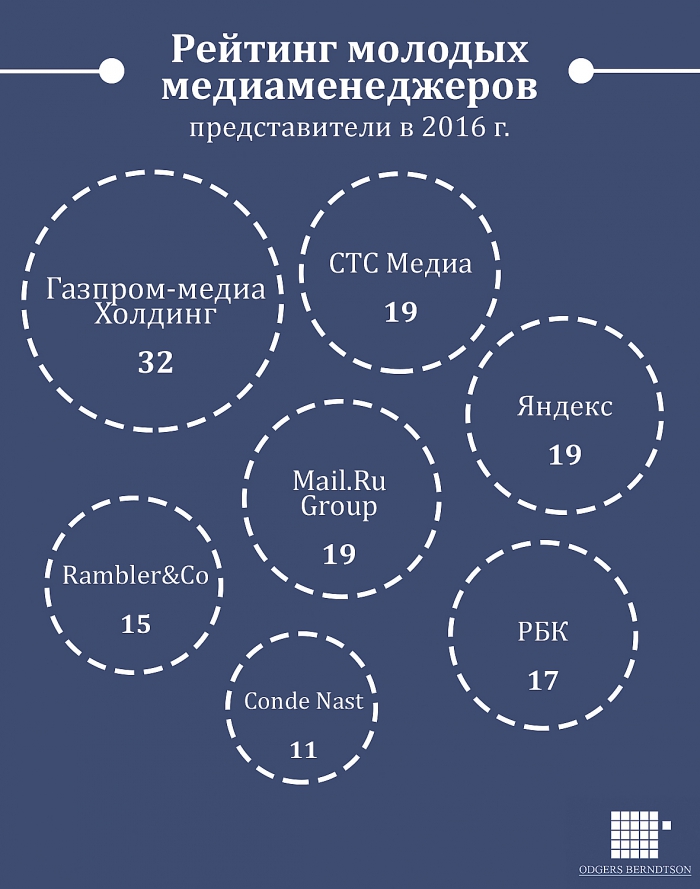 Компания Odgers Berndtson опубликовала ежегодный рейтинг «Молодой медиаменеджер России». В этом году в него вошли 233 молодых специалиста в области медиа, возраст которых не превышает 35 лет.