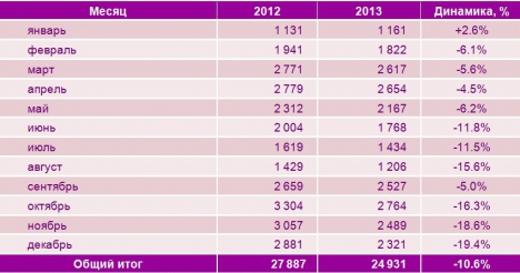 Наихудшие показатели динамики объема рекламы были зафиксированы в IV квартале 2013 года, в частности, в декабре снижение составило 19,4%.