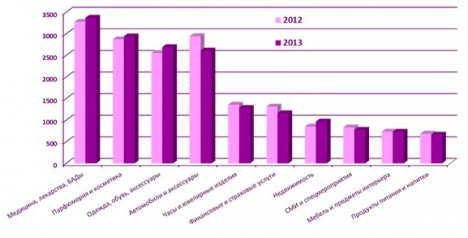 Из 27 товарных категорий 17 сокращают свои рекламные бюджеты. Ситуацию усугубил законодательный запрет на продвижение табачных изделий и алкогольных напитков. Без учета этих двух категорий сокращение рекламных доходов центральной прессы в 2013 г. составляет 5,1%, а с учетом – 10,6%.