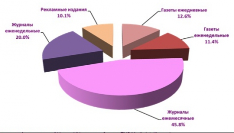 В значительной степени потеряли в доходах все типы изданий, включая региональный сегмент прессы. По центральной прессе в наименьшей степени падение затронуло ежемесячные журналы (-6%), в наибольшей - рекламные издания (-25%).
