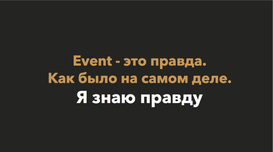 В информационных джунглях мы ищем правду. Ивент — это правда. Продукт на лончах показывают со всех сторон, а не с одной, выгодной для продукта. Участник ивента обладает самой последней информацией. Он становится новым рупором.