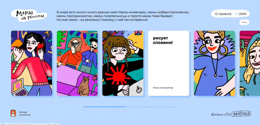 По словам авторов проекта, главные героини — мамы, которые умеют во время конфколла строить самую высокую башню из лего. Мамы, которые умеют одновременно вести коляску, отвечать в 10 чатах в Telegram и рассказывать ребенку о том, что он видит вокруг. Мамы, которые проводят фокус-группы дома и берут своих детей на съемки.