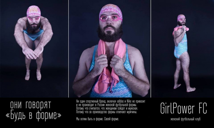 «Мы хотим быть в форме. Своей форме» - так звучит ключевое сообщение от участниц ФК GirlPower и, по совместительству, авторов социальной рекламы. В этом году члены команды выпустили несколько смешных и провокационных принтов, призванных обратить внимание спортивных брендов и организаций на одну из проблем дискриминации в спорте – отсутствие женской футбольной формы.