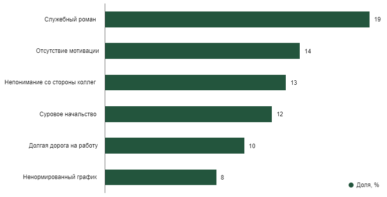 Проблемы с физическим и психологическим здоровьем одинаково часто беспокоят более половины опрошенных россиян. 52% офисных работников сталкивается с проблемами со зрением из-за работы за компьютером, а 31% плохо спит из-за полученного в ходе трудовых будней стресса. Частыми проблемами клерков становятся боли в спине (24%) и варикозное расширение вен от долгого пребывания в сидячем положении (12%), многие жалуются и на ЖКТ (13%).