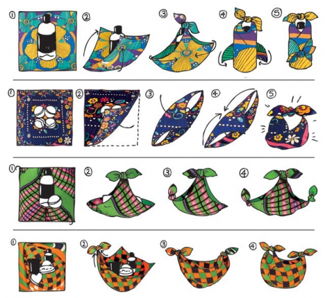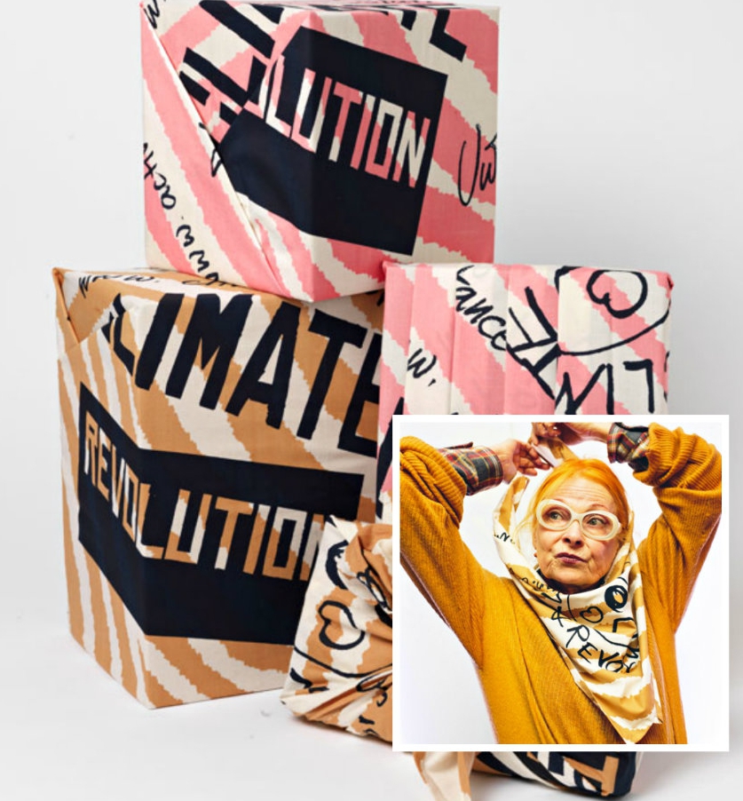 Британский модный дизайнер Вивьен Вествуд создала платки Climate Revolution для косметической компании LUSH, вдохновившись идеей японского искусства упаковывания вещей в ткань - фуросики.