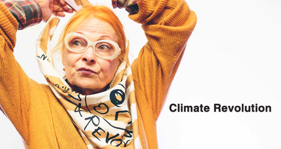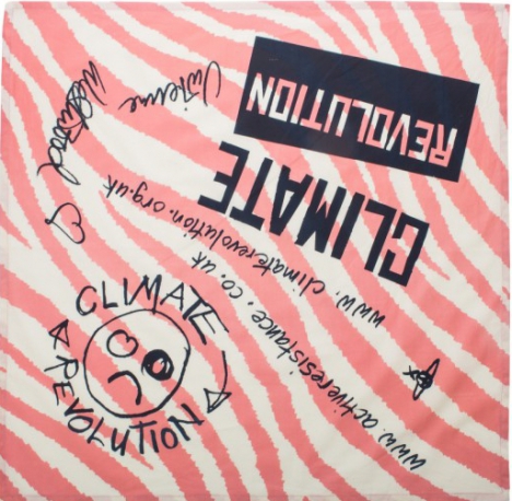Покупая платок Вивьен Вествуд с символикой Climate Revolution, человек автоматически подключается к акции, которая привлекает внимание людей к использованию ресурсов и сокращению отходов.