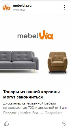 Целью такого заголовка было «пробудить» в посетителях ощущение вероятной потери возможности купить понравившуюся мебель со скидками. Триггером в этом заголовке было словосочетание «что осталось». Оно обращалось к подсознанию и как бы говорило, что с каждым часом товара остается всё меньше. Не говоря прямо «купи сегодня», «купи сейчас», «успейте до такого-то числа», реклама попадала сразу в подсознание и стимулировала желание совершить покупку.