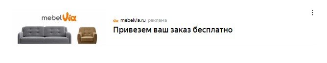 Важный нюанс, который помог нам с формированием выигрышного УТП, заключался в том, что у многих конкурентов отсутствовал ряд товарных позиций, а срок доставки заказов интернет-магазинами сдвигался на несколько недель вперёд. У MebelVia с этим трудностей не было, чем мы и воспользовались.